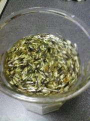 何してるかってマリーゴールドの種の選別です。