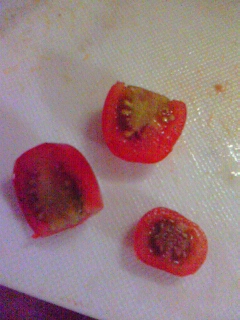 トマトの収穫については諸説あるようだけど、要するに歯ごたえがあるものと弾ける寸前くらい柔らかいもののどっちが好きかとのことらしい。